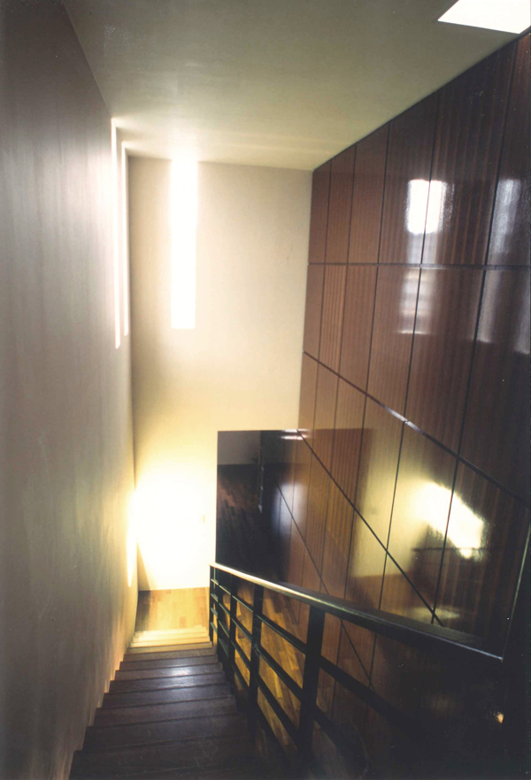吹き抜けの廊下やのびやかな階段、サンルーム、サンデッキなど、光を取り入れた開放的な空間づくりを意識した住まいです。さらに、各所に設けた大容量の収納を見えないように演出することで、室内をシンプルかつスタイリッシュな印象に仕上げました。また、この敷地はもともとの地盤が弱い場所であったため、地盤をかさ上げし、建物下に鋳鉄管を数多く打つことで対応しています。 趣味を楽しむ家シンプルで開放的な住まい老後の別宅山際の家