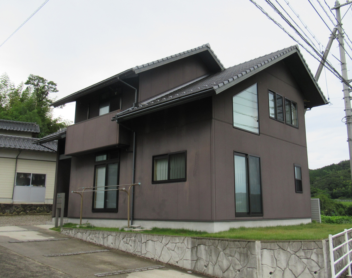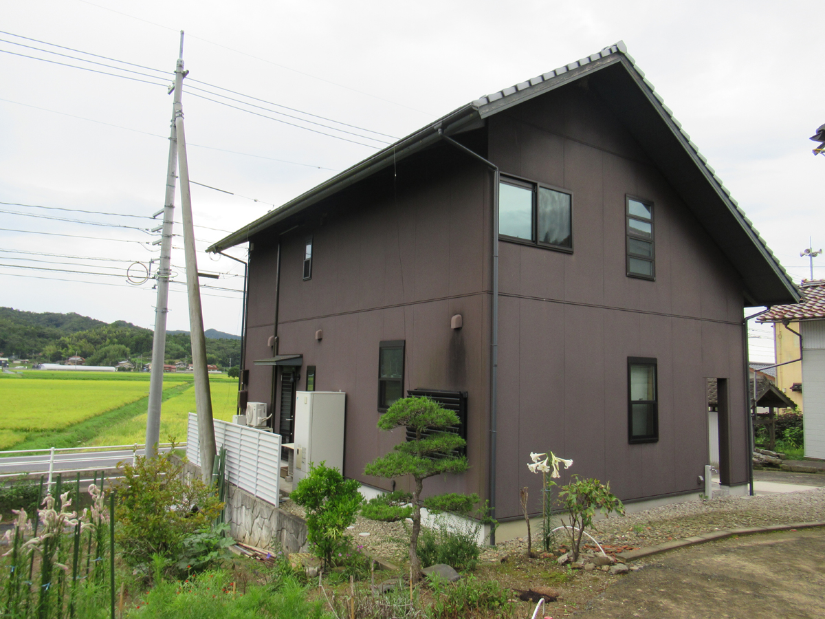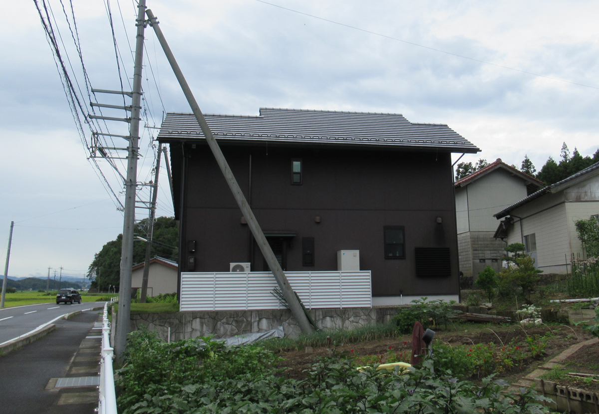 ご両親がお住まいの敷地内に、息子さん家族が新しく家を建てたいというご相談でした。当初建築を予定されていた場所は裏山に近く、土砂崩れの心配があったため、建築場所の変更を提案。道路側の畑の一部を造成し、山から少し離れた場所を宅地にすることで、安心して暮らせる環境を整えました。建築してから約7年が経過しますが、今も大きな被害なくお住まいです。